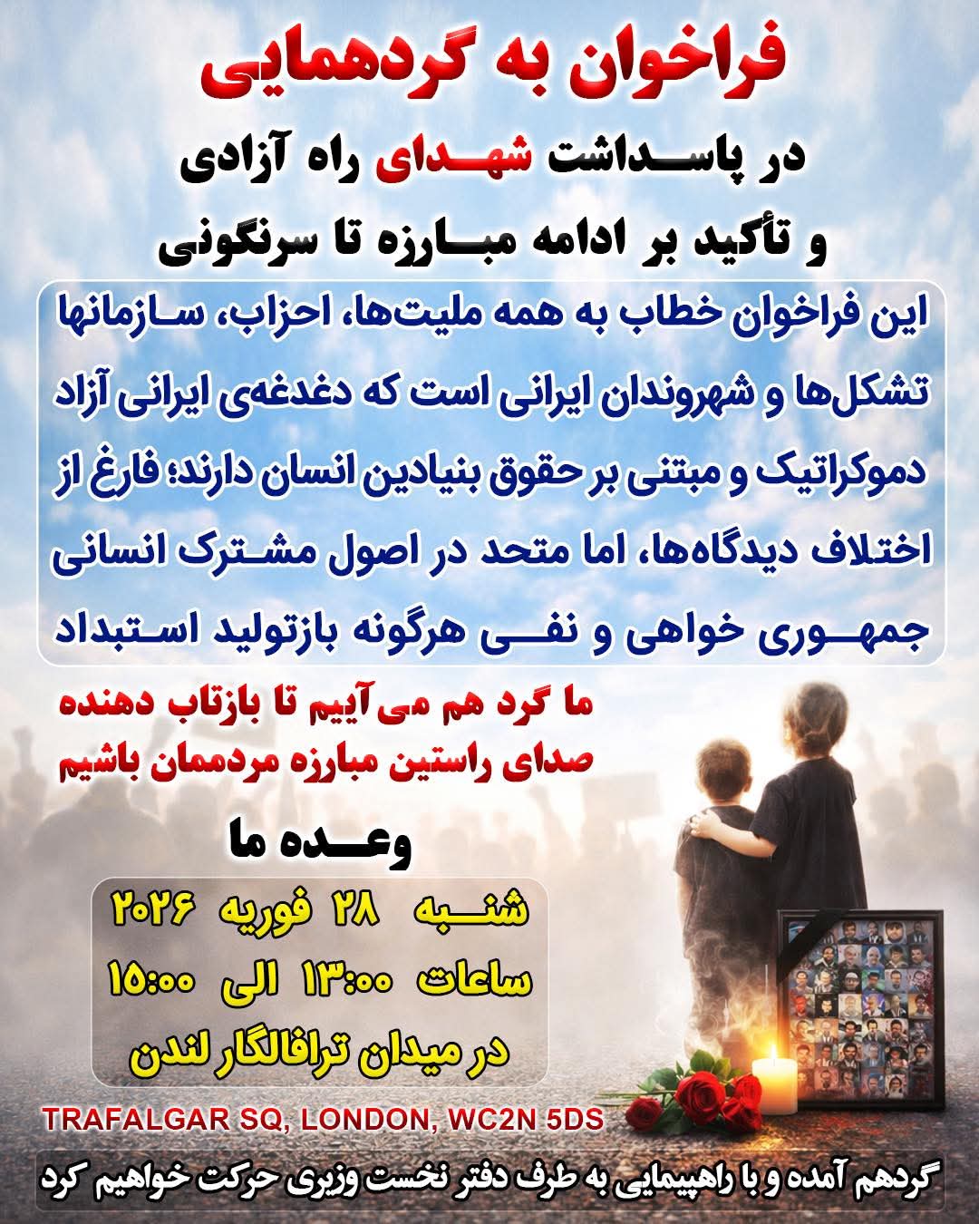 فراخوان به گردهمایی در پاسداشت شهدای راه آزادی و تأکید بر ادامه مبارزه تا سرنگونی رژیم آخوندی